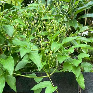センニンソウ パーゴラ北角に垂れ下がり強靭なノウゼンカズラを覆い隠しちゃった 今年の適度な☔雨でパーゴラ覆い隠してる とても小さな🐝ハチからオオスズメバチまで😰