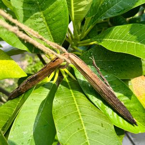 プルメリア J.J.Ken'sWhite 種鞘ちゃん🫛 ついに弾けましたぁー💣💥 まだ亀裂の状態⚡️ 完全パッカンじゃないけど、このまま待った方がいいのかなぁ😅