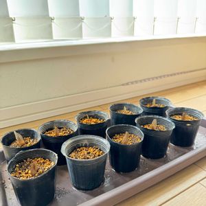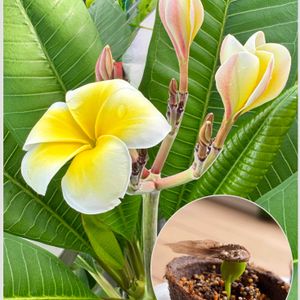 ①プルメリアJ.J.Ken'sWhiteのタネ植え付けました。 ②この子たちのお母さん🌼 以前の経験をもとに、キッチンペーパーでの発芽はせず、そのまま種まき用の土に挿しました😊🪶 このまま水を切らさず様子見です。 どうか芽が出てくれますように🙏 1週間くらいで変化があれば…🌱