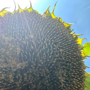 真夏のひまわり🌻 これは結構大きな花になって、たっぷりの種が詰まってます〜重たそう💦