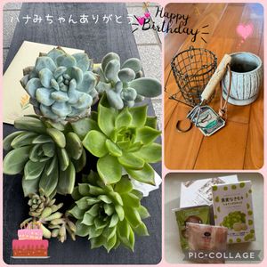 こんばんは.˖٭☽⋆゜ 昨日ハナみちゃんから誕生日プレゼントが届きました🎁💕 ➀たくさんの多肉達とお菓子とお手紙 いつもどうもありがとう( ˶˘ᵕ˘ㅅ)❤︎* これからいい季節になってくるから どんな風に可愛く変身するのかも楽しみ〜🥰 GSの繋がりに感謝です(*ᴗ͈ˬᴗ͈)⁾⁾⁾ ↗は娘からのプレゼント🎁✨ 可愛い鉢とアイアンカゴとミニ熊手 どれも私好みで嬉しいです💕 ➁昨日の夕方 ゴロゴロと雷鳴が鳴り響きだしたと思ったら凄い雷雨に😱⛈ 稲光 前から撮りたかったので スマホ片手に危ないので家の中から動画撮影 キタ━━d(。>∀<。)b━━!!! やっと撮影に成功しました👏🏻 夜になっても鳴り止まず窓の外がピカピカと明るくなるので またまたスマホ片手に今度は2階のベランダから撮影 ピカッと光るたび昼間みたいに明るくなって (⌯︎¤̴̶̷̀ㅿ¤̴̶̷́)オォォォと1人で大興奮🎶 何度か短い停電にもなり雷が危険だと再認識 今夜は虫の声だけで外は静かな夜だけど 東京世界陸上を見てこれまた大興奮📣(˃◡˂ )وイケイケー ➂何の種か分かる人いますか〜ꉂ🤭 正解は↓↓↓ はなしば(しきみ しきび)でした〜😊🌿 実家からもらって来たはなしばについてた種だけ取って置いてたら弾けてました😳 こちらもピカピカできれ〜い✨