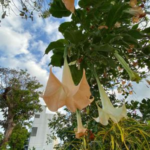 垂れ下がる様に下向きに咲いていました。撮影は昨年です。よろしくお願いします。