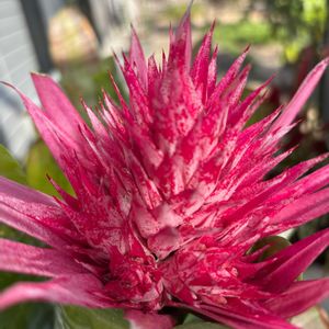 シマサンゴアナナスもう花が咲いてます。 青く見えるのが花、同じ形でピンクのは咲き終わったの。 夏なので成長が早い。