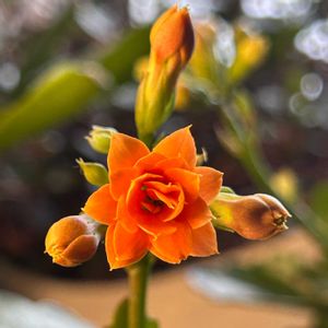 カランコエが咲き始めました 長いこと待ってやっと咲きました♪ こんな寒い日の朝に…❄️ 元気が出るビタミンカラーです🧡 満開は3月ごろかな〜🎶