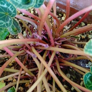 1⃣ガーデンシクラメン✿花芽らしきもの発見🤗 やはり、ウェット夏越しは目覚めが早いな~ 2️⃣中透斑ツキヌキホトトギス 蕾、順調に膨らんでいるものと、 途中で膨らむのが止まったものがある……😱 来週の月曜日から一気に気温が下がる予報がでているので心配💦