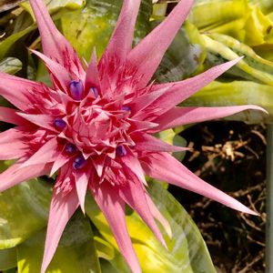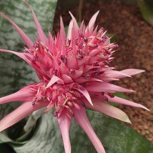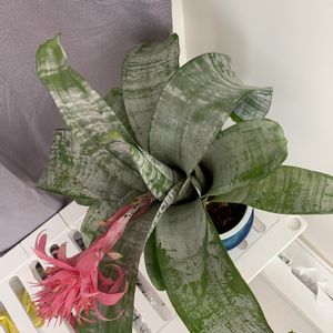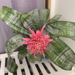 【縞珊瑚アナナス】 《パイナップル科》 花言葉 「私にとってあなたは最愛の人です」 「他人を思う気持ち」 「思慕の情」 別名 エクメア・ファッシアータ シマサンゴアナナス(縞珊瑚アナナス)という名前は、葉に横縞の模様があり、 花はサンゴに似ていることに由来します。 お花はピンクの部分ではなく青い部分です お花は寿命が短くて数日間しか咲きませんが、ピンク色の苞は3ヵ月以上観賞できるそうです。 2021.8.25