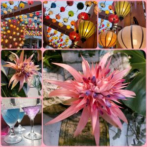 アナナス エクメア シマサンゴアナナス 造花のようなお花ですね😅 ピンクの花びらのような ものは花苞と呼ばれる葉の変化した部分だそうです。 この色合いが綺麗でした~👍 横浜ベイクォーターにて。 昨日は実家に行って、バタフライピーの色変を御披露目したら両親が思いの外喜んでくれました🤭 理系で実験好きの父は色の変化に、母は色の綺麗さに‼️ グラスに入れてうっとりしてましたよ。 「綺麗だわー✨」って😁 帰りは横浜ベイクォーターにちょっと寄り道して点灯したランタンを見てきました‼️