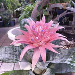 お花屋さんで大きなピンクのお花に目を奪われました 品種名を見忘れました💧 アナナス科やブロメリア科は沢山の種類があるので素人の私にはわからないですね^^; 凄い大株なので見事でしたよ まるで植物園🌸🍃 ❥︎・• シマサンゴアナナスと教えて頂きました🙇♀️