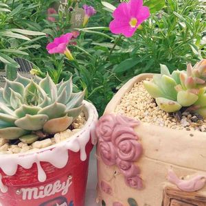 今日はお休み(♡ˊ艸ˋ)ムフフ♥ 45さんからお迎えした子達🌱 植えちゃいました🤗 どの子も可愛い~(∩˃ᴗ˂∩)♡ トムとジェリーの鉢の子🌱 エボニーさん🌱 笑える大きな子を送るから 5号鉢を準備しときぃ~⤴️ と言われて💗 コレクション棚の鉢を😁 大きくて重たい~(*´ `*)💕 いつか お庭で多肉ちゃんを販売するのが 夢(ㅅ´ ˘ `)♡ 夢に向かってのプレゼント✨🎁✨ あリがと〜う ❣❣(*´╰╯`๓)♬*゜