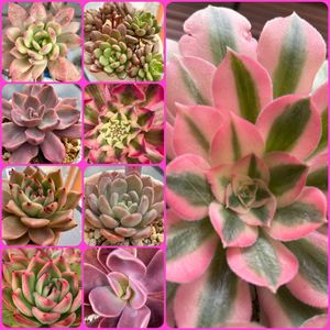 19日はピンクの日!参加しまーす😁 ベランダで綺麗なピンク色になってる多肉ちゃんたち💕 ➡️ウィッチ錦(ピンクウィッチかしら?) 真ん中の列 上から縦に ピンクルルビー ウィッチ錦 ピンクロジー 花いかだ 右の列 上から縦に ミニベル錦 ミセスリチャード錦 ピンクダイヤモンド プロディディティ