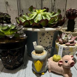 今日45さんから素敵なアエオ便が届きましたー😆💕 デッカくてびっくり🫢‼️ 真ん中の一番大きなダンシングビューティーは用意していたセメント鉢では小さすぎて😅💦大きな鉢があって良かったー😆 左側手前のブラックロリはピンクパンサーさんのリメ鉢にinしました❣️ 左側奥のマリド錦も同じくピンクパンサーさんのリメ鉢に❣️ 大きくて立派なアエオさんたちをありがとうございます💕 他はカクタス広瀬さんからお迎えしたサボちゃんたち。 右奥・ヒボタン 右手前・リチャード錦 ブタさんの鉢・象牙丸錦 ハシビロコウの鉢・月世界 植え替えしていたら遅くなってしまったのでスナフキンに協力してもらってムーミンの日🏷にも参加させていただきます🙏