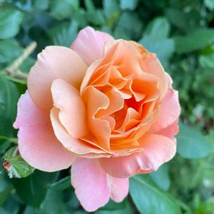 ボルデュールアプリコ🌹、ポチっと一個咲きました😅 暑いから?咲き方が微妙な感じ。サイズも小さ目。 でも、可愛いから嬉しい😍