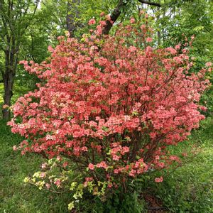 〜 林の中がパッと明るくなる色 〜 ツツジに詳しくないのですがこれはヤマツツジの仲間でしょうか…… 新緑で明るい林ではありましたが、そこが更に明るくなるようなまるで優しいロウソクの灯り🕯️みたいな存在のツツジが満開でした✨ この季節の野山は気持ちいいですね🤗