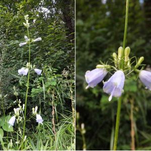 横浜里山ガーデンのお散歩途中。 ホタルブクロのような?。何だろう? パチリ、パチリ その後の調べで「ツリガネニンジン(釣鐘人参)」と判りました。 花の形が釣鐘、地下茎が人参に似ているので「釣鐘人参」と呼ばれるようになったとのことです。😄