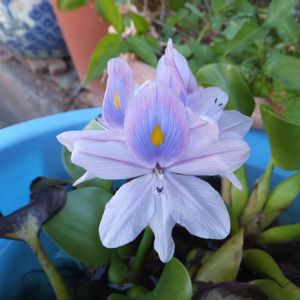 朝の通勤途中。 再度「ホテイアオイ」の綺麗なお花に出会えました。 パチリ