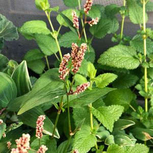 おはようございます☀☀☀ イヌタデ…一昨日までは雑草と思い退治しておりました😅 後ろでレモンバームがモリモリ٩( 'ω' )و 予想最高気温30℃🤬
