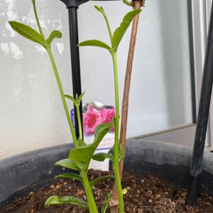 🍀「マンデビラ・ピンクパフェ」🍀 3〜4本の芽が出てきました〜 そしてぐんぐんツルが伸びてきた〜🌿 花が咲くまでは時間が掛かるけど 楽しみです〜💚