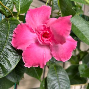 八重咲きマンデビラ ピンクパフェ🎵 昨日に続き もう1種のマンデビラ ピンクパフェ 名前が可愛い❤️ 濃いピンクが華やかです✨