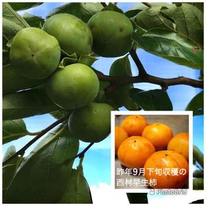我が家に3本ある柿。木が大きい次郎柿と違って、このまだ若木の西村早生柿は小さい。4年程前から結構実を付けるが、9月下旬に熟期を迎える極早生品種は、毎年カラスのもの^_^💧。今年こそは💪。