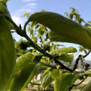 青空☀️と発芽〜展葉期🌱の柿✨。 こちらも、今朝の降霜は何とか大丈夫🙆♂️そう😮💨。 生育が早過ぎる春は、余分なドキドキ💓が増えるねー。 植え付けが遅くなってしまった野菜畑のジャガイモ🥔は、萌芽🌱前で問題なし。 中山間地域の当地、春の農作業は急いで始めると遅霜の心配があるから怖い😱。