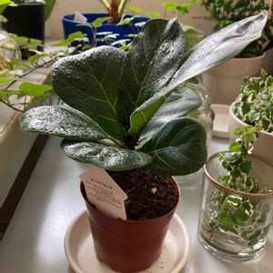 欲しかったカシワバゴムの木 大鉢の購入に躊躇してたら今日目があってしまいました。 手の平サイズのこの子なら!