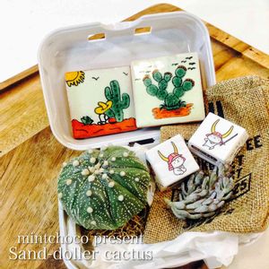 ⌘Astrophytum asterias 'Super Kabuto' mintchocoさんから頂いた スーパー兜丸とスーパー俺丸! さてどっちがどちでしょうd(>∇<;) 欲しさのあまりに作った兜丸 兄弟みたいに似てるでしょ (。-`∀・)b゙