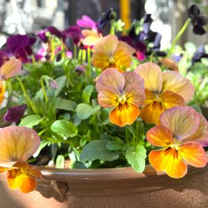 先日、鉢を買わないでお花を買って来てしまったときに購入したビオラたち。 アンティークカラーに惹かれて。 オレンジ系と紫はビビシリーズという品種。 黒い子は名無しでした。 撮影後、もったいないけどお花と蕾はすべてカット✂️しました。 切り花として部屋で楽しみます🧡 株が育ってモリモリになりますように〜