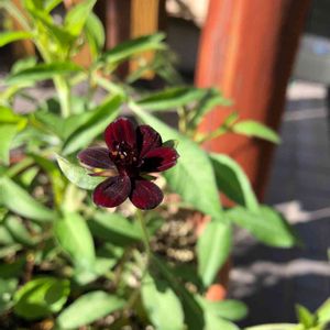秋に咲いたチョコレートコスモスは、剪定後の成長中にて花はまだ。いつもの京蘭さんでまたまた見つけたので連れて帰りました。本当に好きなんよねー♡