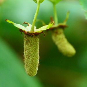 ハスノハイチゴ(バラ科キイチゴ属) かと思うのですが?いかがでしょうか? ハスノハイチゴは長野・愛知・福井以西の本州・四国・九州の冷温帯などに生育する、やや稀な小型の落葉低木。茎は葉の出るところでジグザグに曲がり、所々に棘がある。葉は名前のとおり特徴があり、卵円形の葉の1/3の位置に葉柄がつく。葉の長さは10~25cmで、3~5に浅裂する。葉の表面は無毛で、裏面は脈上に毛があり、棘を散生する。葉柄にも棘が散生する。6月頃に白い花を咲かせ、果実は長楕円形で長さ4~9cmと大きく、白く熟す。 岡山理科大学 波田研HPより この写真だけではわからないですよね〜⁉️ 後から調べてみて もう少しよく見ておけばとまたまた反省😢 御嶽山不易の滝付近(1700㍍) 6/13