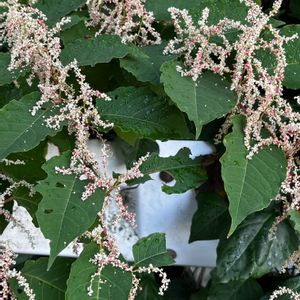 早朝ウォーキング🚶♀️ ガードレールの上で 細かい花が咲いている木を発見。 検索するとイタドリとでました。