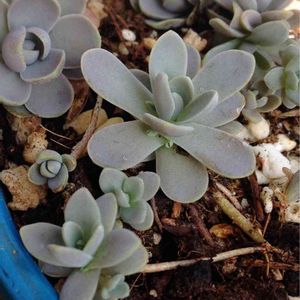 正直もう二度とやりたくないと思ったけど、使わなかったバラバラの子たちで、ふたつめ……楽しくなってきたかもー😆💓 ひとつめもそうだけど、選んだ鉢に対してスカスカで焦ってしまう💦 もともといた子たちを少しずつ足して、なんとか完成‼️ 変な形‼️と思っていた子(真ん中の尖った子)に赤ちゃん発見😳、嬉しくなっちゃったー😚💓 (お母さんへんてこだけど、赤ちゃんこちらへ向けてみました) どちらの寄せ植えもしばらくお触り禁止‼️💦