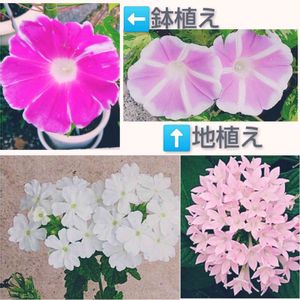 おはようございます👋😃☀ 朝から初めての方何人かが、昨日のランタナサンにいいね👍くださるので「もしや💡❗️」と思ったらやはり【今日のお花】サンでした😊 1日早くpicしてしまいました😜 ↖最近では1番綺麗に咲いたピースサン😆⤴💓 ↙風船カズラサンに絡まれながら咲いたふれ太鼓サン😍 ↗地植えの可愛い朝顔サン😍 ➡と↘はプランター1号の朝顔サン😍相変わらずこんな感じで咲いています😍 同じお花の種から咲いたなんて思えないですよね😊 👩「なんか、得したような気がするわ〜😜」