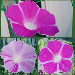 おはようございます👋😃☀ ⬆8/02picの零れ種地植えの子です😍 零れ種プランター植えの↙1番花と↘2番花です😍 ピンクが濃くて、色が抜けたような子が咲きました😍 👩「絞りっぽくて素敵だわ〜😊」 昨年咲いた同じ朝顔サンの零れ種からなのに、違う色が咲くなんてミステリーですね👀‼😲