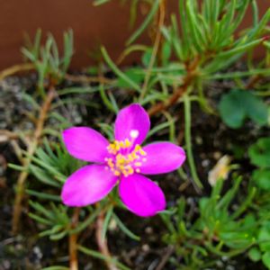 タリナム カリシナム (草花火) 雄蕊と雌蕊が花火のように見えます😍 いろんな花火の表情を撮ってみました。 葉はマツバギクに似ていますが、花は花茎を高く立ち上げ、小さなかわいらしい花を咲かせます。 葉は多肉質で花は正午ごろから開花します。 いつも花が咲いたのを気がつく頃は、暗くなってて、写真撮る🤳タイミング逃してました。 みっこさんからいただいた挿し穂を、休眠期の冬の間は水やりせずに、ジッと我慢の子。暖かくなってきた頃に水やりしてましたが、徒長してきたので、外に出しました。 おかげ様で綺麗に咲いてます。ありがとうございました🙇♀️ 『(分類)スベリヒユ科の多年草 (学名)Talinum calycinum (原産)中央アメリカ (開花期)初夏から秋(主に7〜8月) (別名)クサハナビ (草丈)10〜25cm』