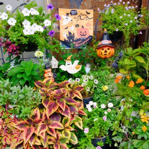 我が家のハロウィンガーデン🎃 栄養系コリウスの葉が濃くなって来ていい感じになって来ました🍂 ペチュニアのハンキングもまだまだ元気に咲いてくれてます🌼