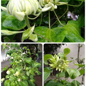 今年もクレマチスが咲きました。 緑からだんだん白くなります。 フロリダ系ダッチェス・オブ・エジンバラという20年くらい前のタグが出てきました。
