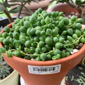朝露で濡れたグリーンネックレス。ぐんぐんと成長中です♪