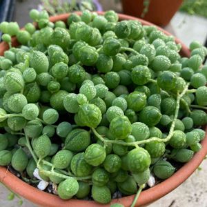 グリーンネックレスをお迎えしてから3週間が経ちました。 鉢から少しはみ出してきています。 成長している姿が見れてうれしい♪ グリーンネックレスは難しいと聞いているのでかなり慎重に育てています。