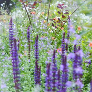 真っ直ぐ立ち上がるシャープな花姿、紫色が美しいサルビア あちこちのお家の花壇で見かけます。 「サルビア・ネモローサ・カラドンナ」 シソ科 ヨーロッパ原産 白花もあります。 宿根サルビア