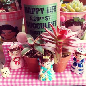 🏷️ペコちゃん祭り みたりんさんの ペコちゃん鉢で 参加します🍬 我が家の 多肉たち いい色に 紅葉してきたわ😍 明日 近くで 開催されるイベントに 出かける予定😊 可愛い多肉に 出会えると いいな💕