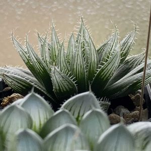 ハオルチア イオナンドラ Haworthia ionandra (H. cooperi 'gordoniana') IB7192 Krakaelrivier, 10km W of Joubertina 細い上に伸びた葉と細かいノギが綺麗です。 このまま草のように伸びていくのが楽しみ。