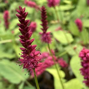 だいぶ前からいる濃いピンクのフロックス(他のフロックスはなかなか上手に育てられない💦) 雨続きで項垂れていますが丈夫な良い子です🙆 ペルシカリアゴールデンアロー、 バーベナバンプトン(ブルーバーベイン)も花穂が上がってきました