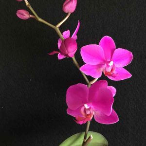 Dor.pulcherrima x Phal. Abendrot 花後の花茎切取りを忘れていたら、二度咲きしました。 株保護のために、満開前に切花にして飾ります。