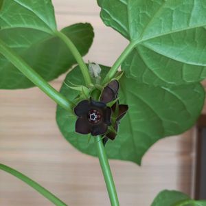 蕾も大分色付き 無事に開花しました 🤗 あのトマトの様な形はやはり蕾でした 大きな葉に隠れるように咲いています どこから見ても不思議な花です ガガ様なので臭いは………クンクン 驚く程ではないです。ちょっとだけクサ! まだまだ蕾が葉の根元に付いているので、 しばらく楽しめそうです (ʃƪ^3^) 水やり頑張りま〜す🤗