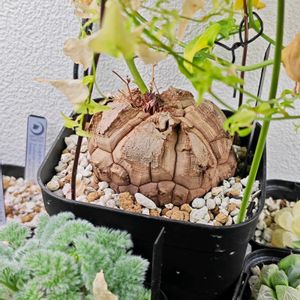 始めて我家で休眠 待ちに待った新葉にご対面です💕😍 こんな感じで出てくるんだぁ~ なるほど……… しっかりした葉とクッキリ浮き出た 葉脈がこの植物の生きる力を感じます こんなに小さな葉なのに凄い‼️ 初夏から秋に花が咲き腐肉臭を出し ハエ🪰を呼び花粉媒介者として利用 まさにガガイモ‼️ガガ様です😠 今後の成長展開が楽しみです H 5.5cm まだ起きて来ない、バンボックス フィランサス…どーしたァ〜😓遅い