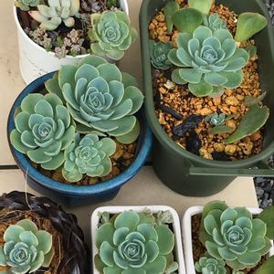 女雛群生さん✨✨✨✨✨ 子株ちゃんを外して植え替え後 だんだん根付いてきたみたいで ツンツン元気になってきました。 雨で部屋に、今日はベランダに移動😃