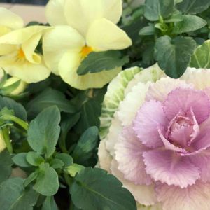 春を感じてまた咲き出してきたパンジーさん🌼と寒さへっちゃら葉牡丹さん🌸