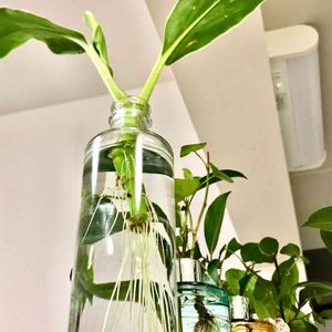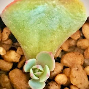 七福神さまの葉挿し 根っこだけ出た子が多い中 芽と根が出てきた可愛い子😍