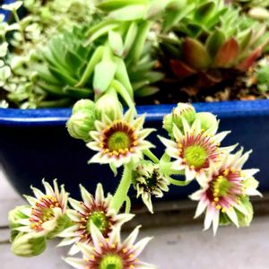 生命力✨ど真ん中から花芽を出したセンペルさんの、花芽を切ってからそのまま抜かずに希望を込めて放置しておいたら!なんとちっちゃい新芽ちゃんがいくつも誕生してました🥰がんばれ🌈
