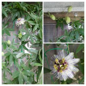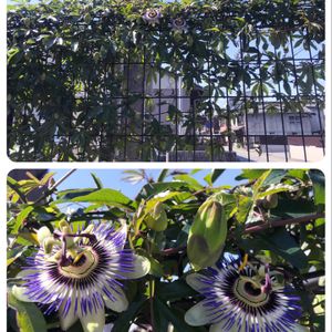 トケイソウの花2輪咲きました💓 昨年の夏過ぎた頃、岐阜県洞戸の食品店に立ち寄った際にもらい、さし芽したものです❣️ 20〜30cmのヒョロッとした1本が、今フェンスに伸び、たくさんのツボミをつけています🌱🌱🌱🌱🌱🌱🌱🌱🌱🌱🌱 上のpicビョ〜ンとしてみて❣️ 私にとって最近一番のサプライズです💓